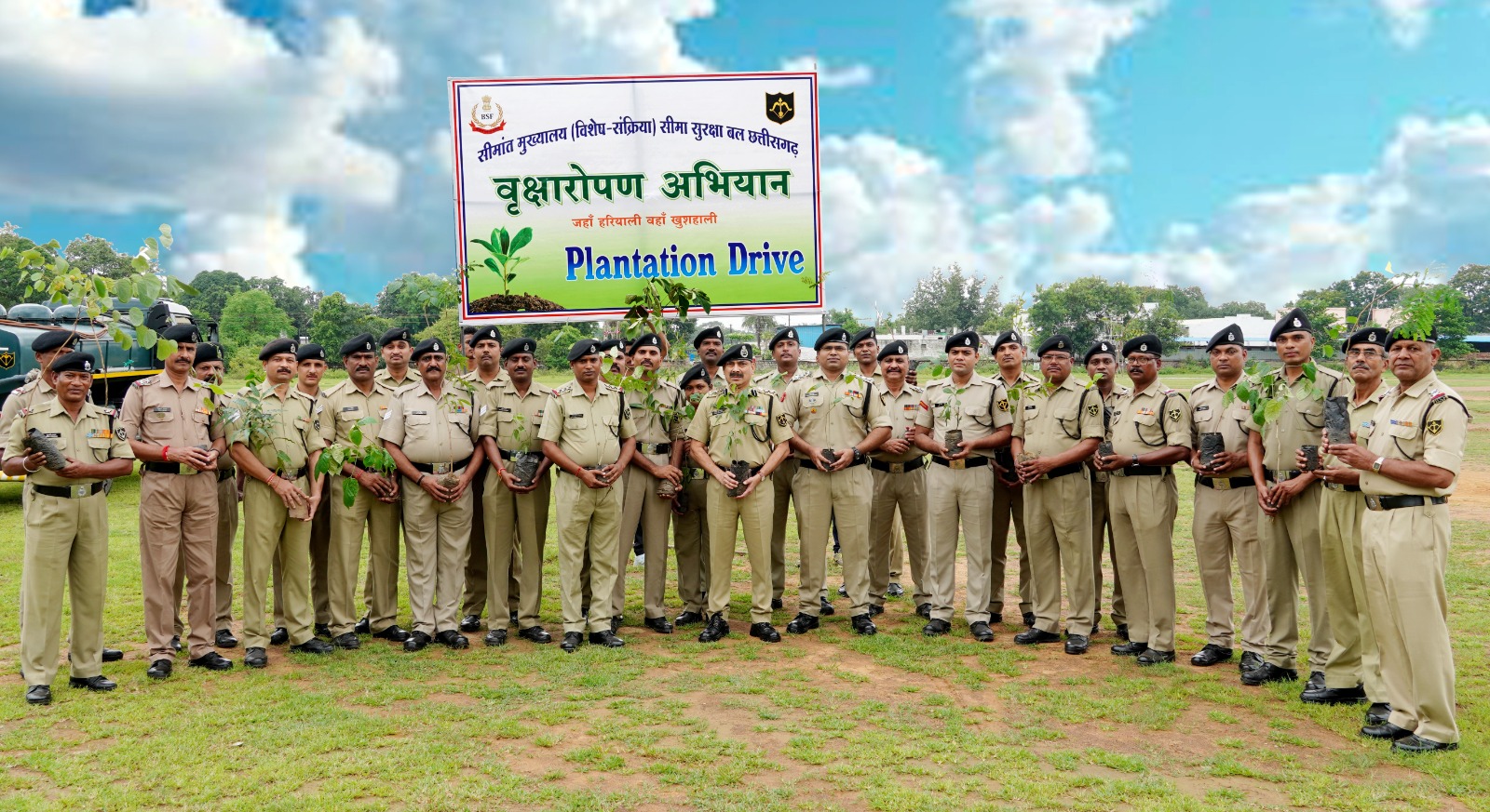 भिलाई_सीमा सुरक्षा बल (BSF) के सामरिक मुख्यालय (विशेष संक्रिया) द्वारा भिलाई के बीएसपी सीनियर सेकंडरी स्कूल ग्राउंड में एक बड़े वृक्षारोपण कार्यक्रम का आयोजन किया गया। इस पहल का उद्देश्य पर्यावरण संरक्षण और हरित भविष्य के प्रति जागरूकता बढ़ाना था।