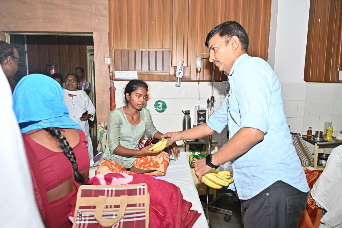 विधायक श्री टोप्पो ने मरीजों से मुलाकात कर उनके स्वास्थ्य की जानकारी ली और अस्पताल में मिल रही स्वास्थ्य सेवाओं की समीक्षा भी की। साथ ही भर्ती मरीजों को फल वितरित किए।